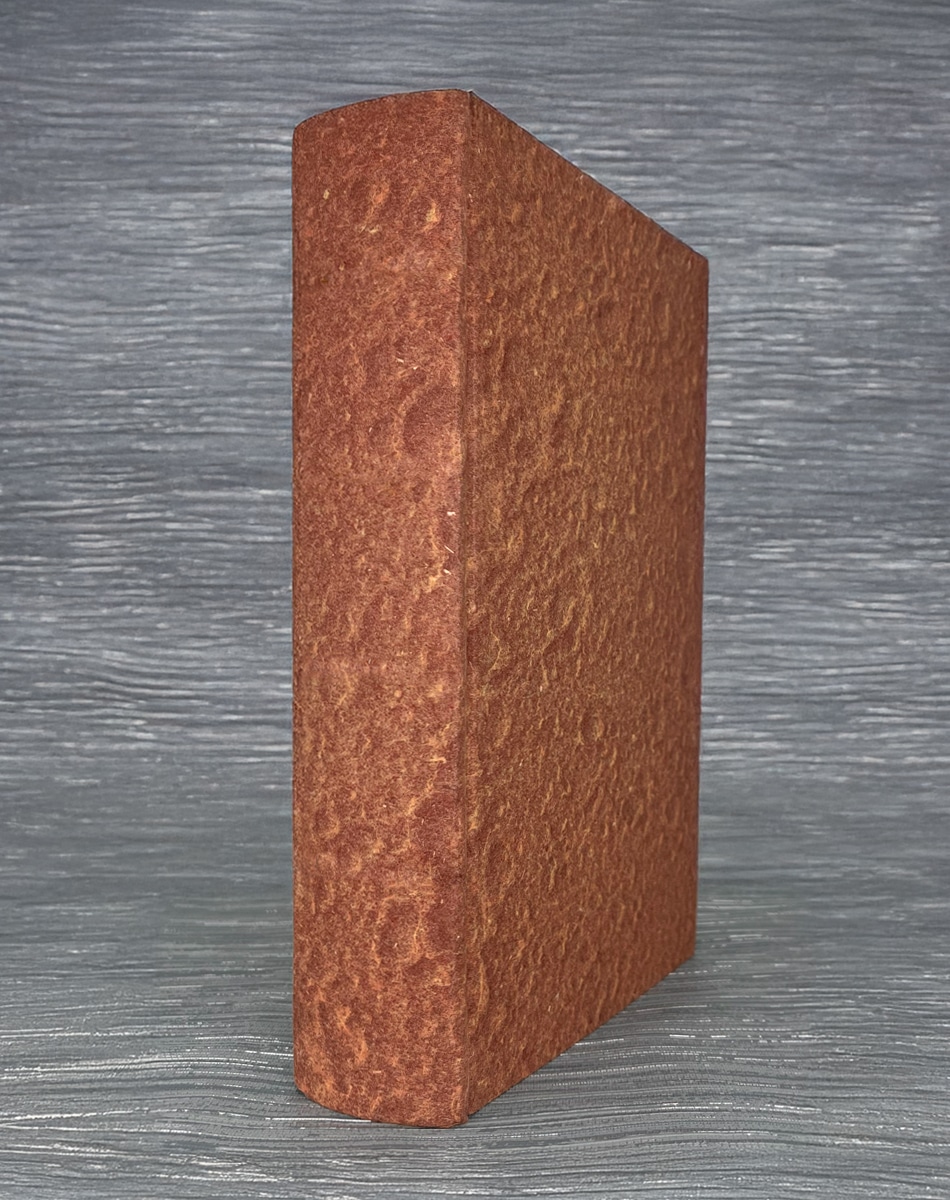 The slipcase is covered in a “rust” heritage buckram bookcloth and has two hits of foil stamping on both sides in white and black. Each copy is handbound by Ludlow Bookbinders.