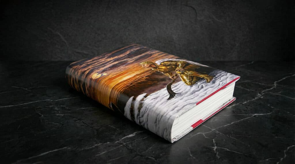 The third instalment of the Hyperion Cantos by Dan Simmons (RIP sir). We unfortunately lost Dan Simmons last month which was a huge shock and shame as it’s been a real honour to work on these books. Dan was also very impressed with the work we did on Hyperion and The Fall of Hyperion which warms my heart to the core. For those wondering, we had all signing sheets for book 3 and 4 signed a few years back, so our release of the Cantos will be flat signed by Dan himself.