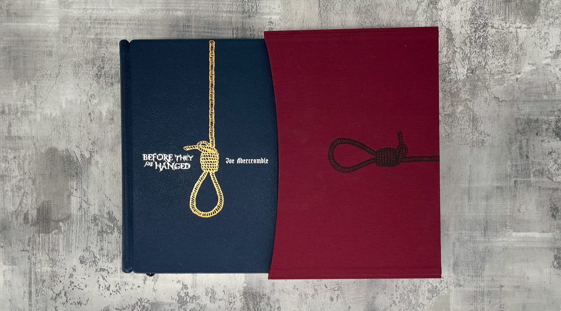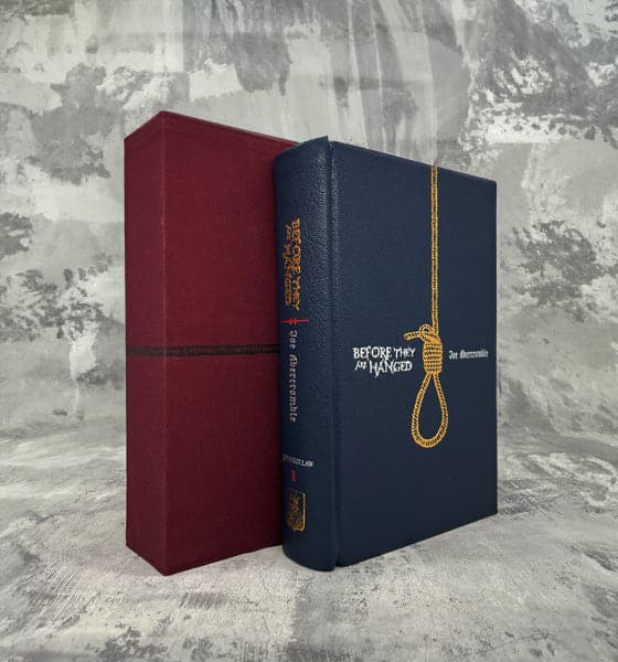 We had originally planned the second book to be a different colour, but then Joe pointed out that if we carry on with the standalones and the final trilogy, the collectors shelf may look a bit like a pack of crayons. So we’re keeping to blue leather for this edition (potentially a different shade), and will switch up the colour for the standalones and final trilogy.